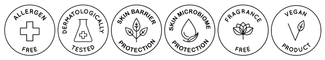 - Formlated with natural, biodegradable ingredients to protect the microbiome, maintain pH balance, and restore the skin barrier